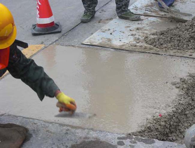6.加水:將普林德路面修補材料與水混合攪拌,加水量在17%--18%時效果較佳,加水量必須控制在17%--18%之間,不許泌水。